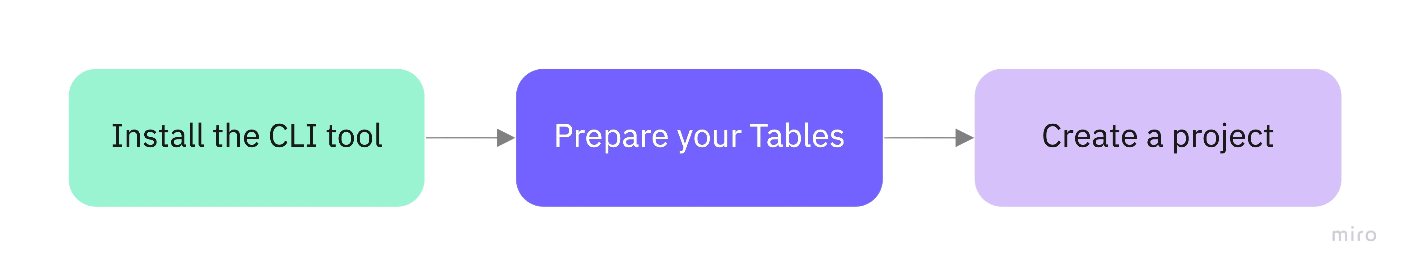 In Lightdash, everything you need for BI is written as code in your dbt project. You use dbt to transform all of the data from your data warehouse, then you use Lightdash to explore it. But, before you hook up your dbt project to Lightdash, we need to make sure we have Tables to explore. In this setup guide, we’ll walk you through the steps of installing + using the Lightdash CLI and creating the first Tables in your project.