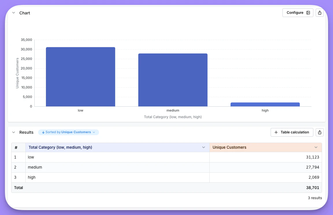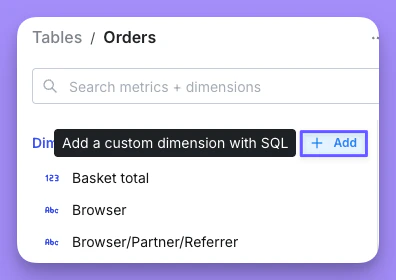 In this example, let’s explore theorders table and create a custom dimension that categorizes my orders’ totals into three categories: low, medium, and high.