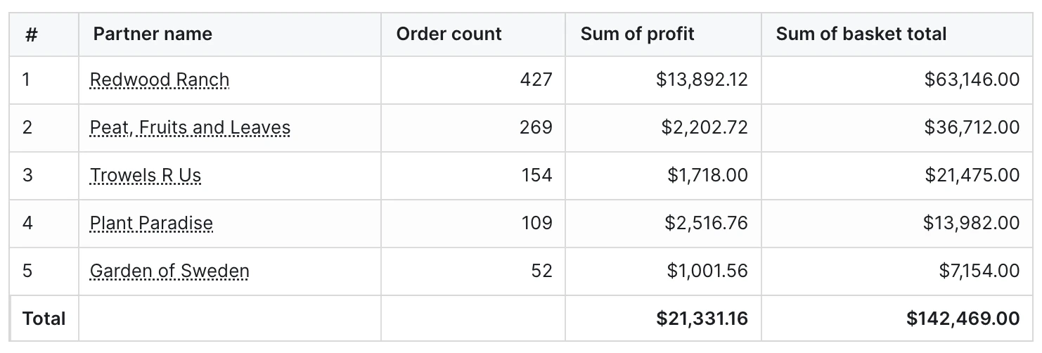 • For example, color the Partner name column orange when the Total orders column is greater than 1,000.