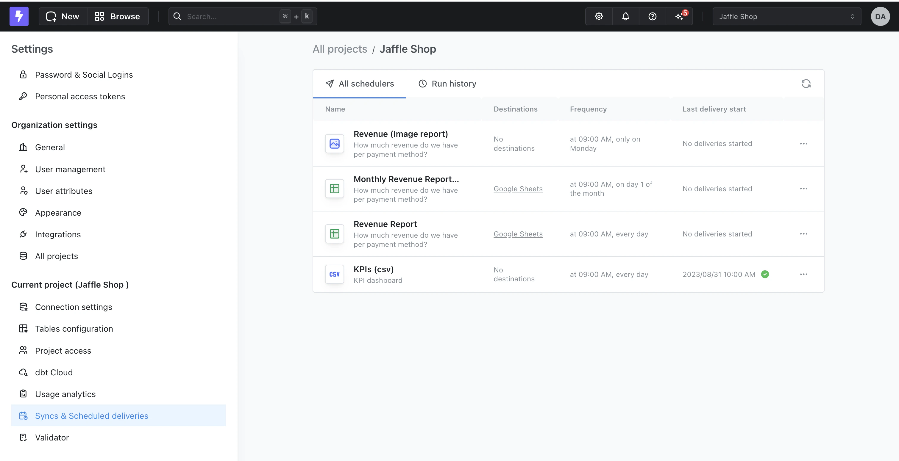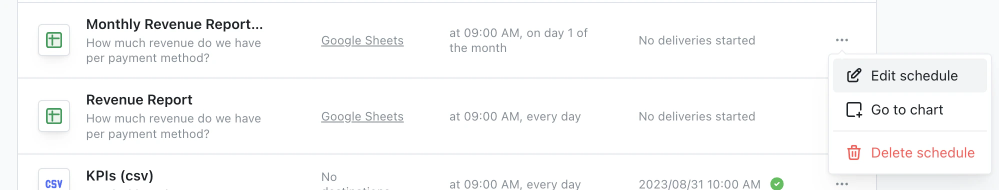You can set up as many syncs as you like, and if you make any changes to the content, Lightdash will update the syncs the next time they’re sent.